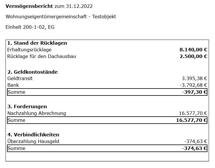Der Vermögensbericht wird im Rahmen der Jahresabrechnung erstellt.