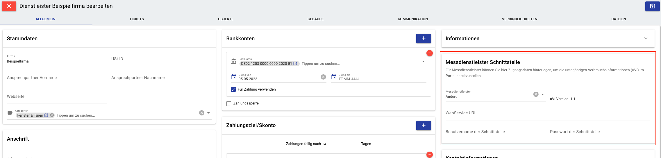 - Legen Sie Ihren Messdienstleister so wie jeden anderen Dienstleister an.