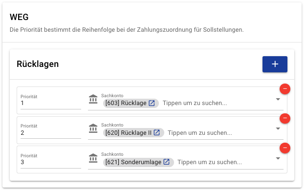 Es kann sein, dass ein Sachkonto, welches man z.B. für die Rücklage bei einem Eigentümer oder für die Mieteingänge bei einem Mieter auswählen möchte, im jeweiligen Eigentumsverhältnis oder Mietverhältnis nicht zur Auswahl steht.