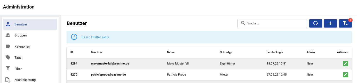 Nutzertyp: Stellen Sie die Hausverwalteransicht ein.