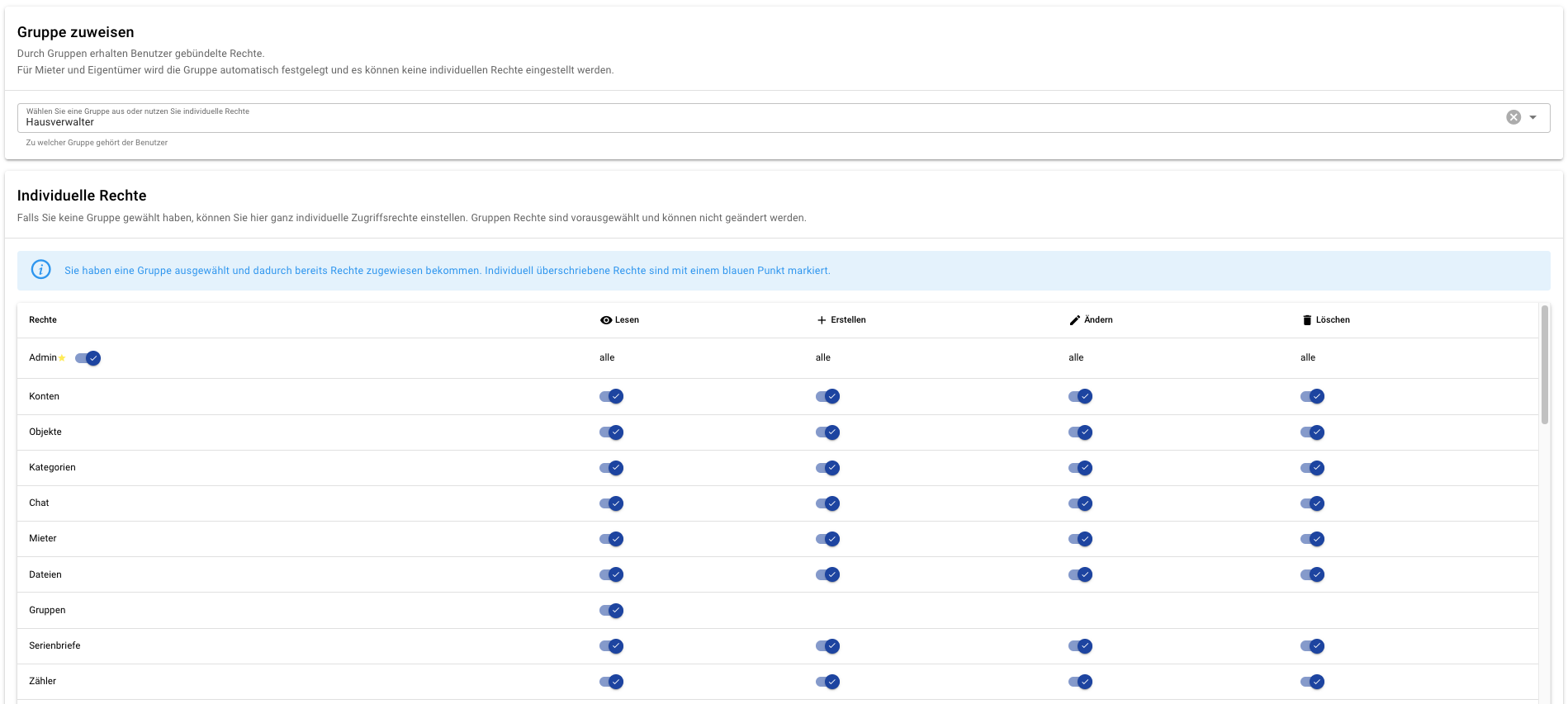 Es kann vorkommen, dass ein einzelner Benutzer mehr Rechte zugewiesen bekommen soll. Ebenso können einzelne Rechte auch entzogen werden.