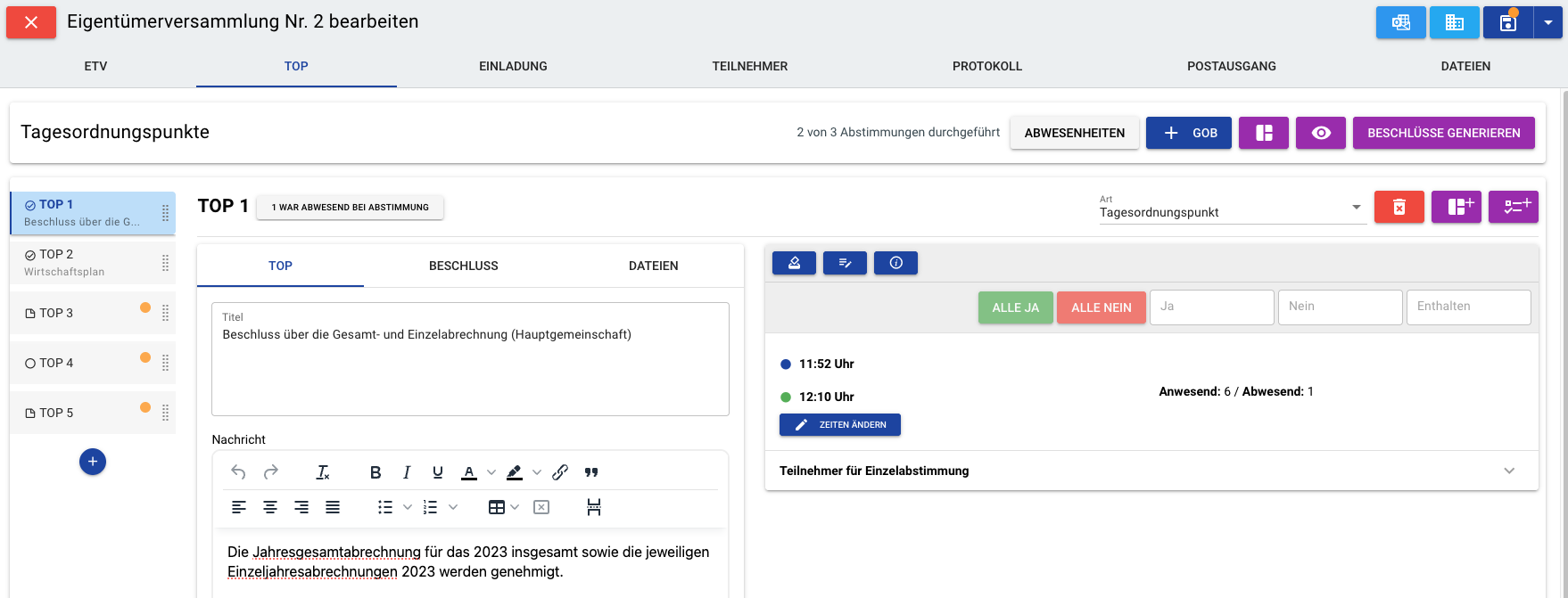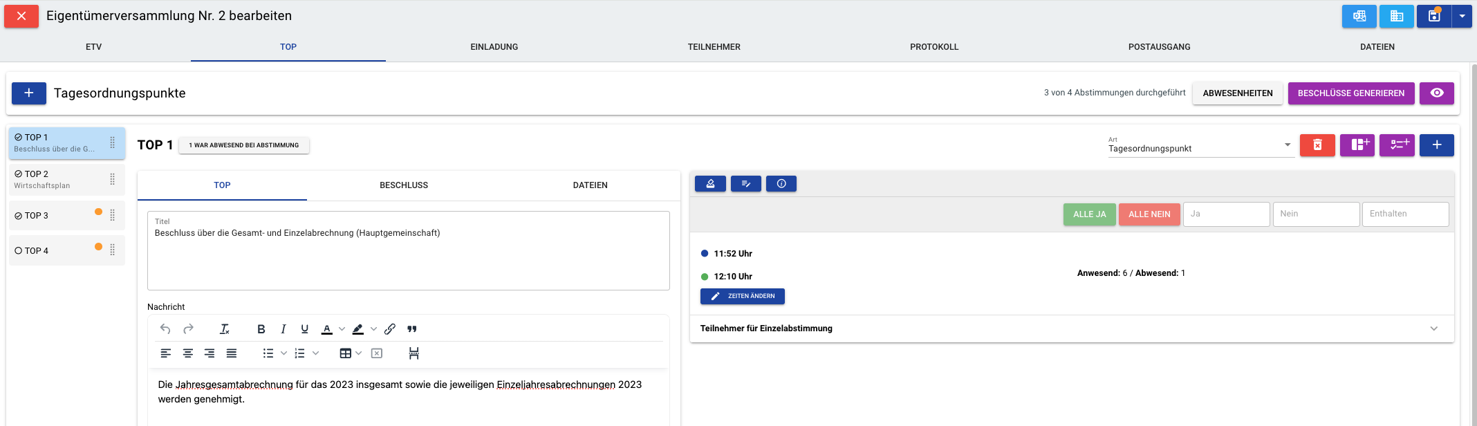 3. Bearbeiten Sie nun die Tagesordnungspunkte.