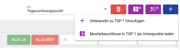 Mit dem Symbol daneben können Sie weitere Musterbeschlüsse aus Ihrer Sammlung laden und hinzufügen.