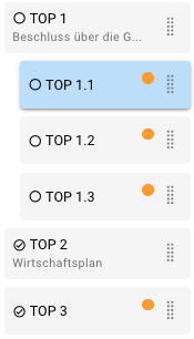 Auf der linken Seite sehen Sie außerdem anhand des Häkchens, ob die Abstimmung in einem TOP bereits stattgefunden hat oder noch nicht.